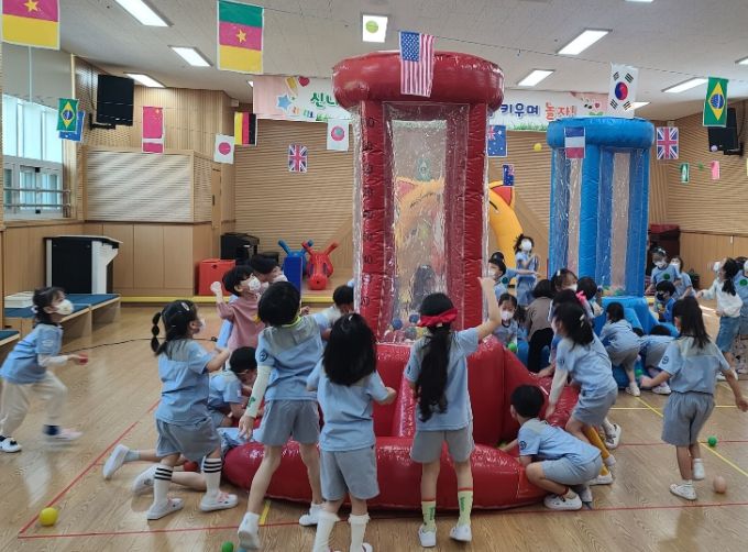 미니운동회에서는 신나는 음악을 들으며 체조를 했고, 손수레에 탱탱볼을 담아 협력하여 달리기, 친구와 함께 피라미드 탑 쌓기, 블랙홀에 공을 넣는 블랙홀 게임 등 친구들과 함께 큰 소리로 웃으며 재미있고 유익한 시간을 갖게 됐다.