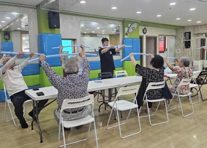 체조교실에서는 가벼운 스트레칭과 기억력 향상 동작, 리듬 체조 등 다양한 활동이 진행되며, 중간에는 인지 퀴즈와 소통 활동을 통해 뇌 자극 효과를 높인다.