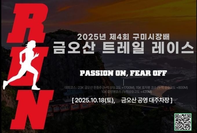 대회는 오전 7시 30분 금오산 대주차장에서 개회식을 시작으로 △23km 금오산 환종주코스(형곡전망대-도수령-현월봉-환경연수원-금오산공영대주차장) △15KM 효자봉 코스(형곡전망대-도수령-금오산공영대주차장)△10KM 효령봉코스(형곡전망대-금오랜드-금오산공영대주차장) 세 구간으로 진행된다. 울창한 숲과 계곡을 따라 이어지는 코스마다 가을 정취가 물씬 풍기며, 참가자들은 자연이 빚은 풍광 속에서 체력과 인내를 겨룰 예정이다.