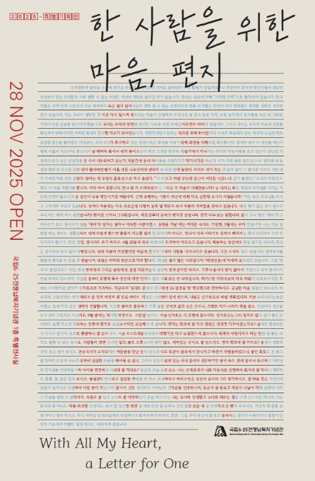(플러스인뉴스) 통일부 국립6·25전쟁납북자기념관은 개관 8주년을 맞이하여 11월 28일 오후, 경기도 파주시 소재 기념관 1층 특별전시실에서 '한 사람을 위한 마음, 편지'를 주제로 특별전시 개막식을 개최한다.