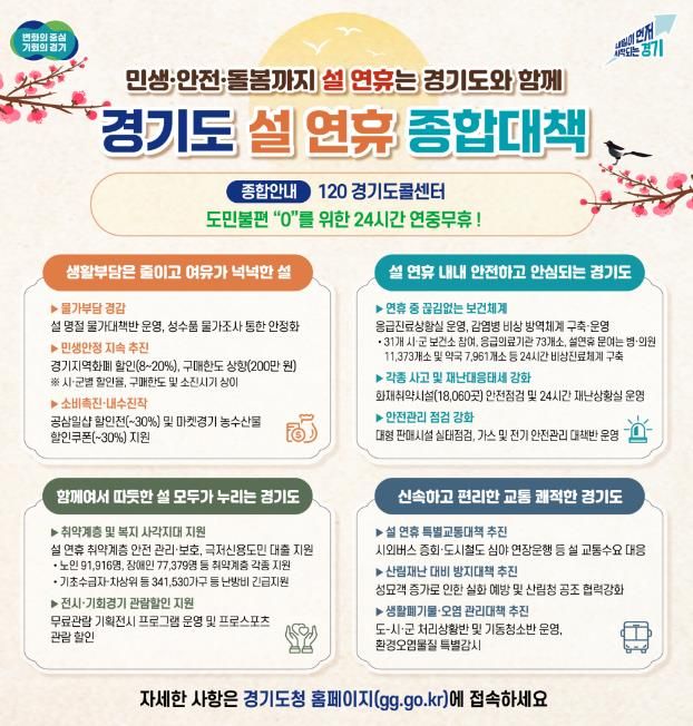 (플러스인뉴스) 경기도가 도민들이 따뜻하고 편안한 명절을 보낼 수 있도록 ‘설 연휴 종합대책’을 추진한다.