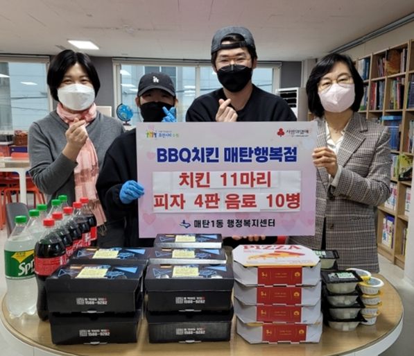(플러스인뉴스) 수원시 매탄1동 ‘BBQ치킨 매탄행복점’은 관내 어린이들을 위해 지난 13일 치킨 11마리, 피자 4판, 음료 10병을 관내 The꿈지역아동센터에 후원했다.