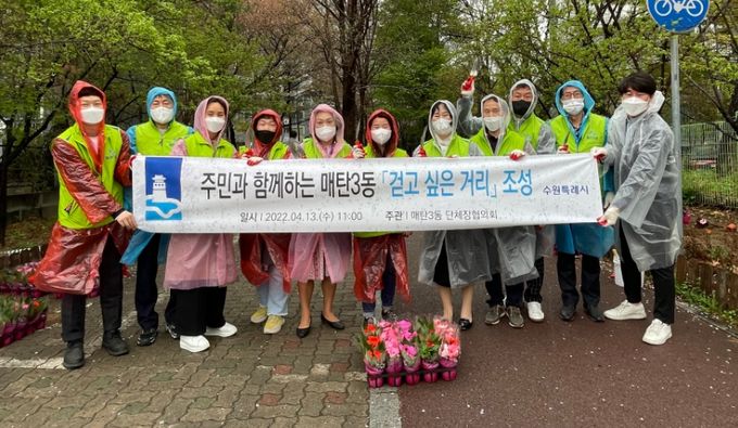 (플러스인뉴스) 수원시 영통구 매탄3동은 지난 13일 모꼬지길 내 초화류 식재 및 환경정비 등을 진행하며 주민과 함께하는 ‘걷고 싶은 거리’조성에 대한 첫 삽을 떴다.