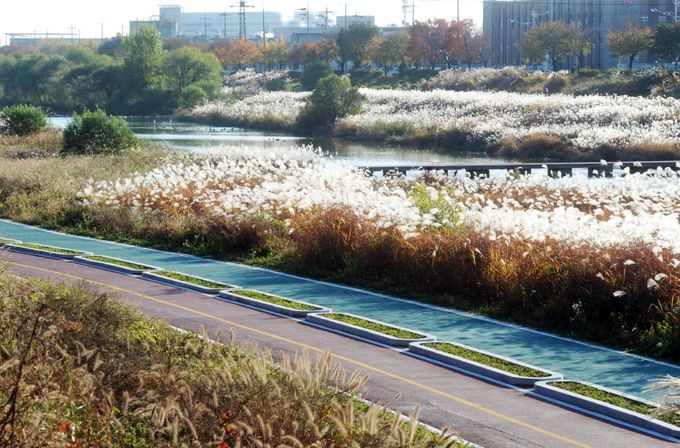 이곳에 조성된 ‘물억새’는 다년생 풀로 매년 가을 시민들에게 아름다운 은빛의 장관을 선물하는 오산천의 명소이다.