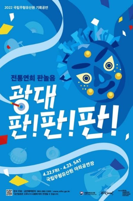 (플러스인뉴스) 문화재청 국립무형유산원은 오는 4월 22일(금)부터 23일(토)까지 국립무형유산원 야외공연장에서 전통연희 판놀음 '광대 판! 판! 판!'을 개최한다.