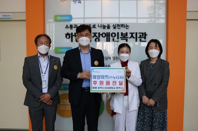(플러스인뉴스) 태양할인마트는 지난 4월 18일 하남시장애인복지관에 장애인의 날 기념 후원품을 전달하였다