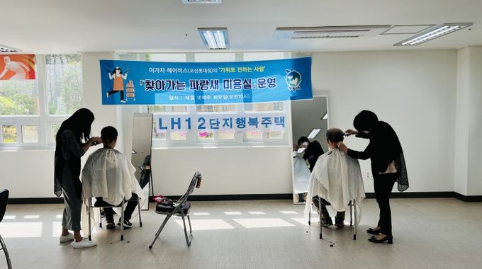 (플러스인뉴스) 오산시은 지난 20일에 가수동 세교2LH12단지아파트에서 초평동 행정복지센터와 협약을 맺은 롯데마트 오산점 이가자 헤어비스 박현진 원장이찾아가는 파랑새 미용실 사업을 진행했다고 밝혔다.