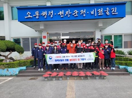 (플러스인뉴스) 남부지방산림청 울진국유림관리소에서는 지난 4.11.(월)~ 4.18.(금)까지 울진군 8개 읍?면에(200개 기증) 화목보일러 연통 불티방지 캡 기증식을 가졌다.