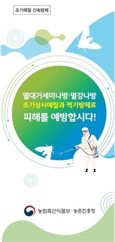아울러 멸강나방과 열대거세미나방의 형태와 피해증상, 방제를 위한 등록 약제 목록이 정리된 홍보물을 지방농촌진흥기관에 배포해 농업인 지도에 활용하도록 안내하고 있다.
