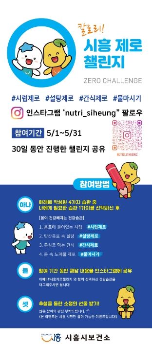 (플러스인뉴스) 시흥시는 시민의 건강한 식생활 실천을 위해 ‘칼로리! 제로 챌린지’를 5월 1일부터 31일까지 한 달간 운영한다.