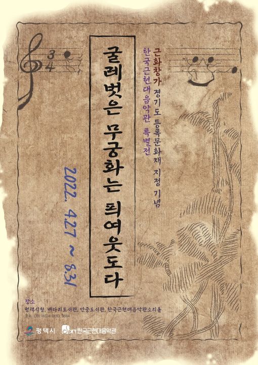 전시 일정은 오는 4월 27일부터 평택시청을 시작으로 △배다리도서관 5.14.~5.31 △안중도서관 5.31.~6.30. △한국근현대음악관 7.1.~8.31.까지이다.