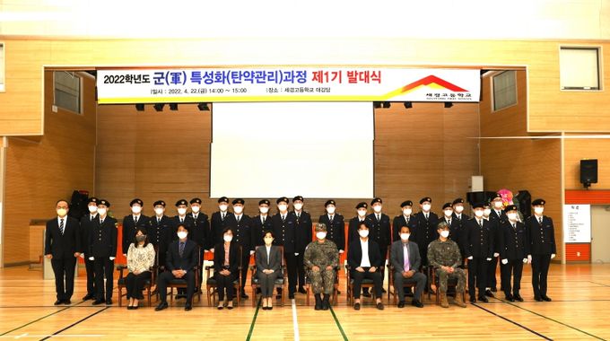 지난 4월 22일 개최된 발대식에는 육군종합군수학교 학과장, 교육청 관계자, CNO테크 및 경창산업 대표 등 군 협약 기업 관계자들이 자리를 함께 하였으며, 본 발대식에 참여한 3학년 군 특성화 과정 학생들은 미래인재 양성을 위한 군 특성화 교육과정을 성실히 이수하고 국가 경쟁력 강화에 기여할 수 있는 인재가 될 것을 약속했다.