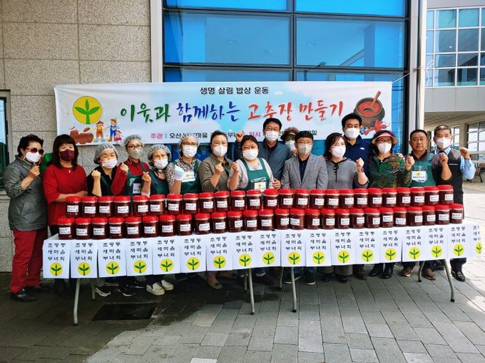 (플러스인뉴스) 오산시 초평동은 지난 28일 관내 돌봄이 필요한 어르신 및 취약계층의 복지 증진을 위해 초평동 새마을부녀회와 함께 ‘사랑의 수제 고추장 담그기’행사를 진행했다고 전했다.