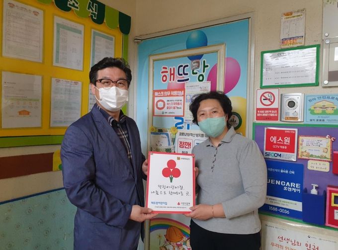 이에 평택행복나눔본부 황성식 본부장은 "평택시 복지사각지대 해소를 위한 나눔에 함께 참여해주신 해뜨랑어린이집과 관계자분들에게 감사의 말씀을 전한다”며, "전달해주신 후원금은 해뜨랑어린이집의 따뜻한 마음과 함께 잘 전달할 수 있도록 하겠다”고 했다.