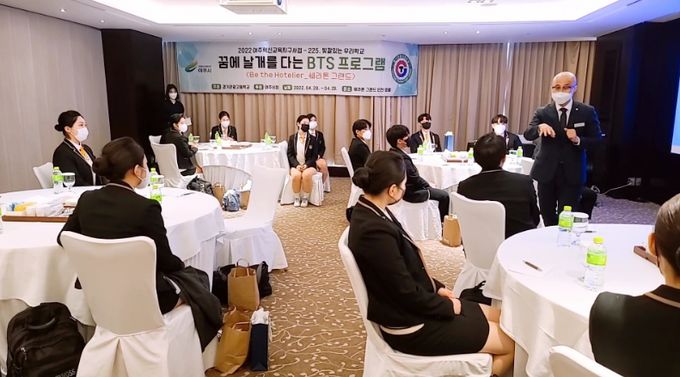 (플러스인뉴스) 경기관광고등학교는 5월 2일(월) 쉐라톤 그랜드 인천 호텔에서 BTS (Be the hotelier) 호텔리어 양성 프로그램을 4월 28일(목) ~ 29일(금) 1박 2일간 진행했다고 밝혔다.