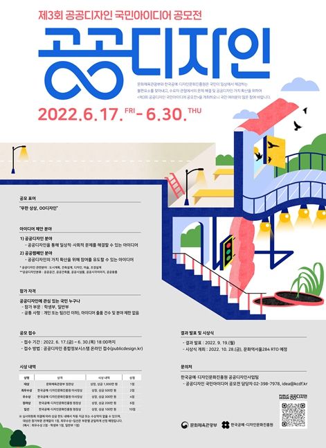 (플러스인뉴스) 문화체육관광부는 한국공예·디자인문화진흥원과 함께 ‘제3회 공공디자인 국민 아이디어 공모전’을 개최한다.