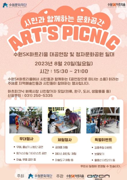 (플러스인뉴스) 수원문화재단은 오는 8월 20일 문화도시 수원 조성을 위한 부서 간 연계사업으로 시민과 함께하는 문화공간 '아츠 피크닉'을 진행한다.