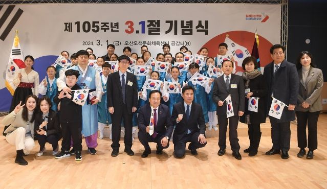 (플러스인뉴스) 오산시가 만세운동의 의미를 되새기고 민족의 독립을 위해 목숨을 바친 순국선열들의 숭고한 희생정신과 애국정신을 기리기 위해 지난 1일 제105주년 3.1절 기념행사를 개최했다.
