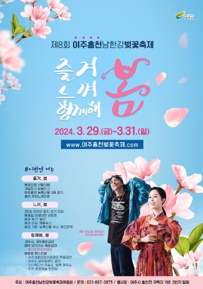제8회 여주 흥천 남한강 벚꽃축제’는 흥천면 귀백리와 율극리, 상백리 일대에서 ‘즐겨 봄, 느껴 봄, 함께 해 봄’을 주제로 다양한 볼거리와 즐길거리, 그리고 체험거리가 관광객들의 발길을 사로 잡는다.