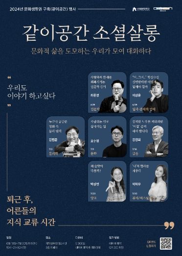 (플러스인뉴스) 커피 한 잔의 여유와 지적 대화를 나눌 수 있는 특별한 소셜살롱이 집 근처 도서관에 준비되어 있다. 수원문화재단 문화도시센터는 나이, 직업 등에 상관없이 비슷한 취향을 가진 사람을 모아, 유명 인사와 함께 대화하는 교류의 장을 펼칠 예정이다. 같이공간 소셜살롱에서 유명 인사는 소셜장으로 불린다.