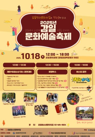 (플러스인뉴스) 하남시 감일청소년문화의집은 오는 10월 18일 오후 12시부터 18시까지 감일문화공원(감일공공복합청사 뒷편)에서 '제2회 감일문화예술축제'를 개최한다.
