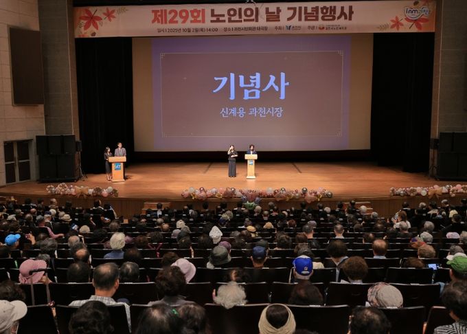 (플러스인뉴스) 과천시는 2일 시민회관 대극장에서 ‘제29회 노인의 날 기념식’을 열었다. 시가 주최하고 과천시노인복지관이 주관한 가운데 열린 이날 행사에는 지역 어르신 1천1백여 명이 참석했다.