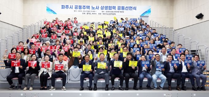 협력식은 공동주택 노동자의 초단기 계약 근절과 고용 안정 보장을 주요 내용으로 ▲노동자 고용안전 보장을 위한 사용자의 책무 ▲행복한 공동주택 문화 조성을 위한 노동자의 역할 ▲상생 문화 정착을 위한 파주시의 노력 등이 담겼다.