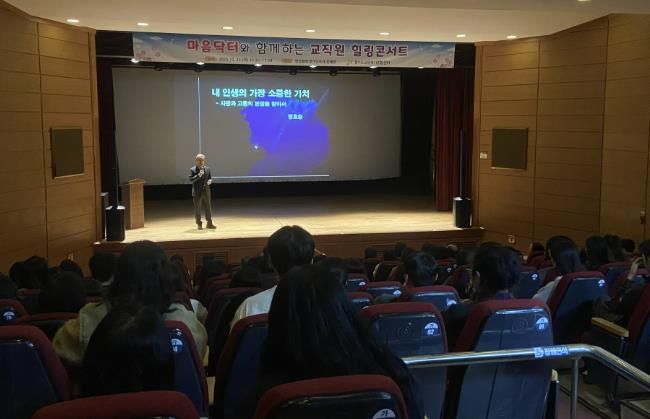 (플러스인뉴스) 여주교육지원청은 10월 23일, 명성황후생가유적지 문예관에서 '마음닥터와 함께하는 교직원 힐링콘서트'를 개최하여 관내 교직원들에게 명사 강연과 아카펠라 공연을 통해 마음 건강을 회복하는 기회를 제공했다.