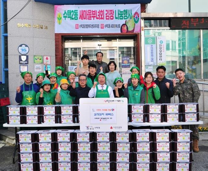 박정희 수택2동장은“추운 날씨에도 이웃사랑을 실천해 주신 새마을부녀회원들께 진심으로 감사드린다”라며“앞으로도 지역사회에 따뜻한 나눔 문화가 지속될 수 있도록 행정복지센터에서도 적극 지원하겠다”라고 말했다.