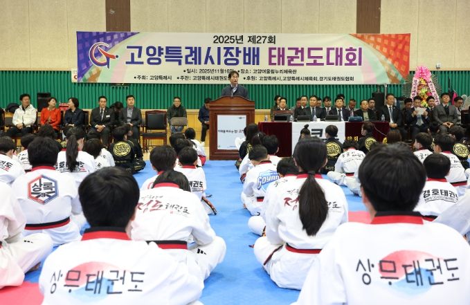(플러스인뉴스) 2025년 제27회 고양특례시장기 태권도대회가 16일 고양어울림누리 체육관에서 개최됐다. 이동환 고양특례시장은 “갈고닦은 실력과 기량을 유감없이 발휘해 후회 없는 경기를 펼쳐주길”이라고 말했다.