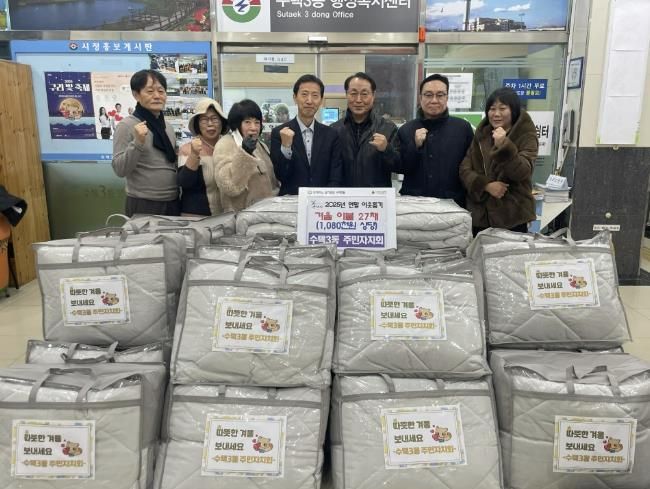 (플러스인뉴스) 구리시 수택3동 주민자치회는 지난 3일, 겨울철 한파에 대비하여 관내 저소득 어르신 가정 27세대에 겨울 이불 27채(약 108만원 상당)를 전달했다고 밝혔다.