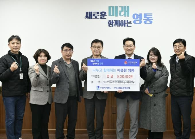 (플러스인뉴스) 수원시 영통구는 지난 24일 한국자산관리공사 경기지역본부에서 관내 경제적으로 어려움을 겪는 이웃을 위해 성금 500만 원을 기부했다고 밝혔다.