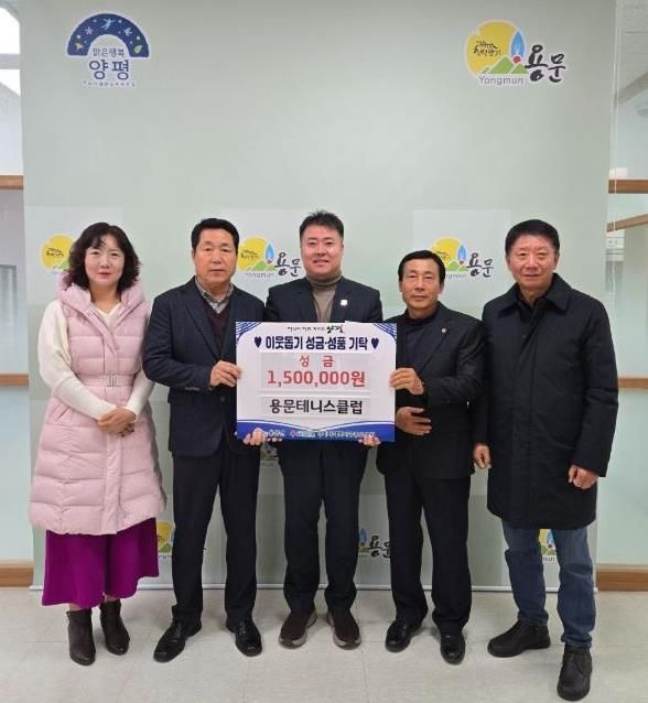 홍명기 용문면장은 “연말연시마다 지역사회를 위해 따뜻한 나눔을 실천해 주시는 용문테니스클럽에 깊이 감사드린다”며 “회원 여러분의 정성이 어려운 이웃들에게 큰 위로와 희망이 될 것”이라고 감사의 뜻을 전했다.