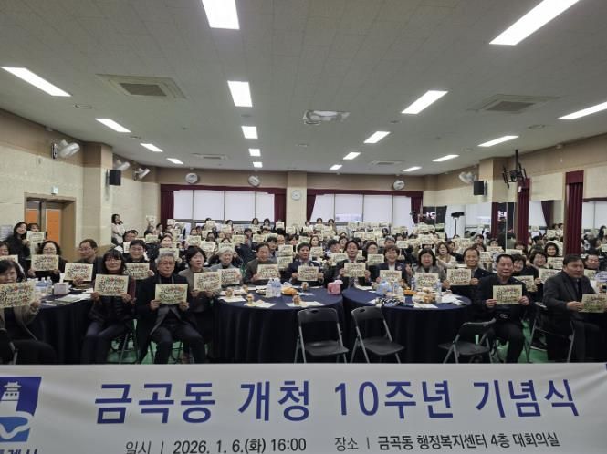 (플러스인뉴스) 2026년 개청 10주년을 맞은 권선구 금곡동은 지난 6일 지역구 의원과 주민 등 100여 명이 참석한 가운데 주민자치회 및 통장협의회와 함께 10주년 기념행사를 개최했다.