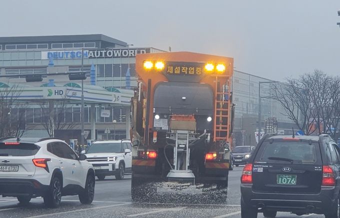 (플러스인뉴스) 수원시가 10일 선제적으로 제설제를 살포해 블랙아이스(도로결빙)에 대비했다.