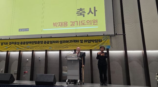(플러스인뉴스) 경기도의회 보건복지위원회 박재용 의원(더불어민주당, 비례)은 16일, 수원컨벤션센터에서 열린 ‘2025년 경기도 권리중심 중증장애인맞춤형 공공일자리 성과보고대회 및 취업박람회’에 참석해 축사를 전하고, 중증장애인의 노동권 보장과 권리중심 공공일자리 정책의 지속적인 발전 필요성을 강조했다.