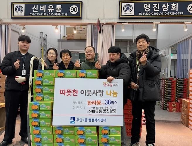 (플러스인뉴스) 수원 농수산물도매시장 내 신비유통‧영진상회에서 설 명절을 앞두고 우만동 이웃들에게 따뜻한 정을 전했다고 밝혔다.