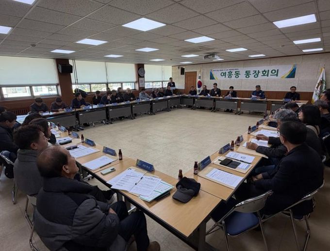 (플러스인뉴스) 여주시 여흥동은 6일 오전, 행정복지센터 2층 회의실에서 제10대 김광덕 부시장과 함께하는 2월 1차 통장회의를 개최했다. 회의에는 김광덕 부시장, 김영완 여흥동장, 정지남 홍문지구대장, 이병길 여주농협조합장 및 33개 마을 통장이 참석했다.
