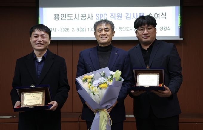 이번 감사패 전달식은 용인시 처인구 원삼면과 이동읍 일대의 사업 현장에서 묵묵히 실무를 수행하며, ‘용인 반도체 클러스터 조성 및 소부장 (소재·부품·장비) 기업 유치’라는 목표 달성에 기여한 SPC 직원들의 노고를 격려하기 위해 마련됐다.