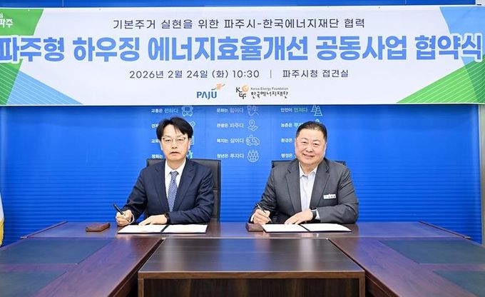 (플러스인뉴스) 파주시는 지난 24일 한국에너지재단과 ‘기본주거 실현을 위한 파주형 하우징 에너지효율개선 공동사업’업무협약을 체결했다.