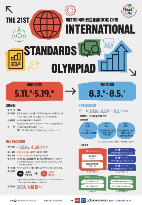(플러스인뉴스) 산업통상부 국가기술표준원은 금년 8월에 개최되는 세계 청소년 표준화 경진대회인 '제21회 국제표준올림피아드'에 참가할 한국대표팀 선발을 위해 3월 5일부터 국내 예선대회 참가팀 모집을 시작한다.