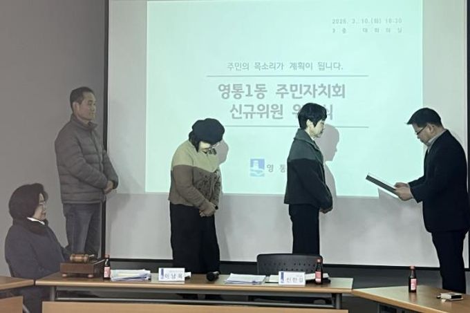 신한길 영통1동장은 “주민자치회에 새롭게 함께하게 된 위원 여러분을 진심으로 환영한다”며 “주민들의 다양한 의견을 반영해 지역사회 발전에 기여하는 주민자치 활동을 펼쳐 나가기를 기대하겠다”고 말했다.