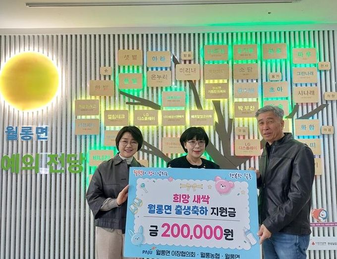 사용환 월롱면 이장협의회장은 “태어난 아이들이 도약과 활력을 상징하는 2026년 병오년의 기운처럼 건강하고 밝게 성장하기를 진심으로 바란다”라며, “아이들이 밝은 미래의 주역으로 성장하길 기대하며, 출생 축하 지원금을 통해 아이의 첫 출발을 지역사회가 함께 응원하겠다”라고 말했다.