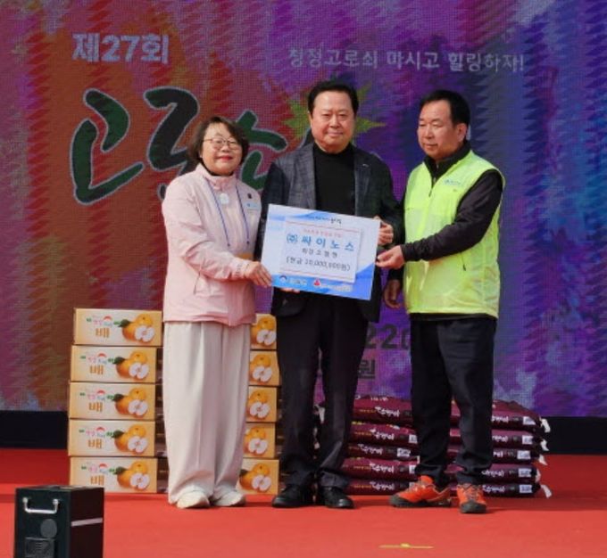 (플러스인뉴스) 양평군 단월면은 지난 21일과 22일, 축제 기간 중 단월레포츠공원에서 열린 기념행사에서 ㈜싸이노스 조철형 회장이 이웃돕기 성금 1,000만 원을 전달했다고 밝혔다.