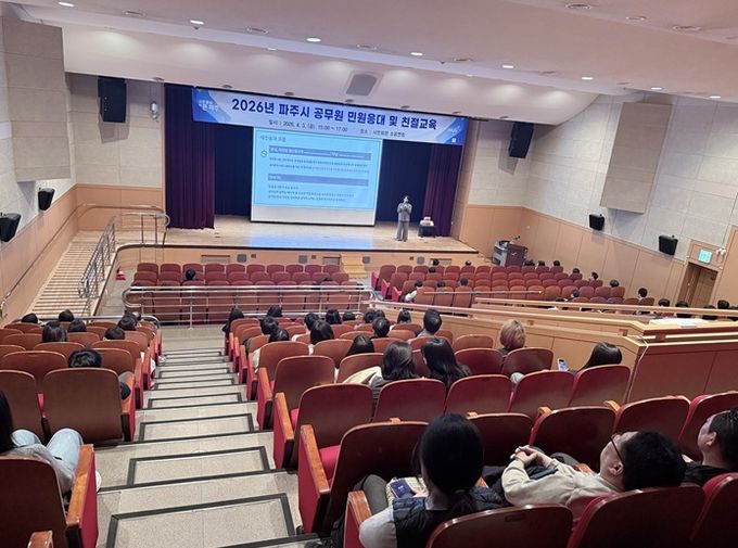 (플러스인뉴스) 파주시는 지난 3일 파주시민회관 소공연장에서 민원 담당 공무원 220명을 대상으로 민원 응대 역량 강화를 위한 녪년 파주시 공무원 민원응대 및 친절교육’을 실시했다.