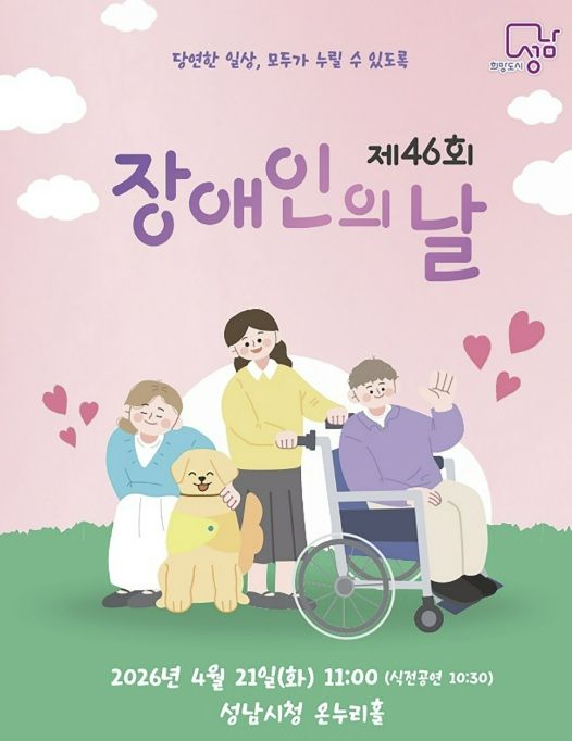 (플러스인뉴스) 성남시는 ‘제46회 장애인의 날(4.20)’을 맞아 오는 4월 21일 오전 11시 시청 1층 온누리에서 기념식을 연다.