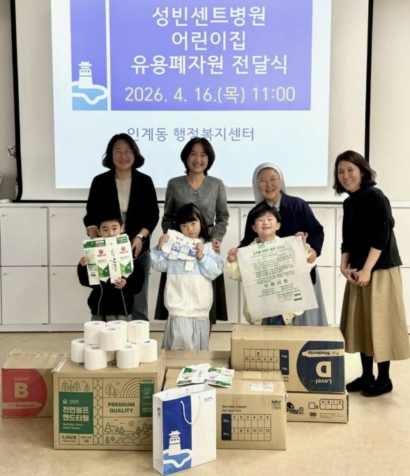 (플러스인뉴스) 수원시 팔달구 인계동은 지난 16일 오전, 성빈센트병원 어린이집으로부터 아이들이 정성껏 모은 유용 생활 폐자원을 전달받았다고 밝혔다.