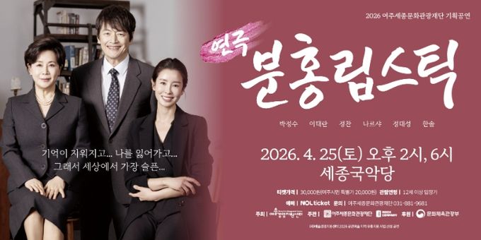 (플러스인뉴스) 여주세종문화관광재단이 오는 4월 25일, 예술경영지원센터의 공모사업인 '공연예술 지역 유통지원 사업'의 일환으로 베테랑 배우들이 참여한 창작 연극‘분홍립스틱’을 세종국악당에서 개최한다.