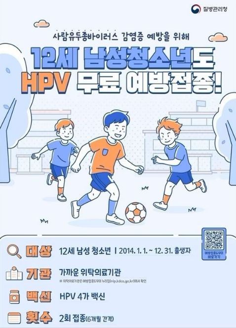 HPV 예방접종은 첫 접종 나이에 따라 접종 횟수가 달라지며, 12~14세는 6개월 간격으로 2회 접종하면 된다. 특히 이번에 새롭게 포함된 12세 남성 청소년도 6개월 간격으로 2회 접종을 완료해야 충분한 예방 효과를 기대할 수 있다.