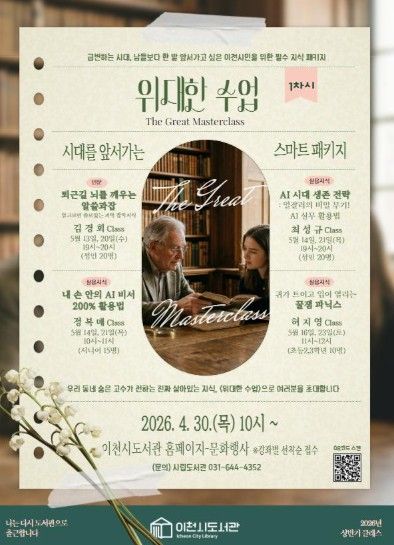 (플러스인뉴스) 이천시립도서관은 오는 4월 30일부터 2026년 상반기 시민강사 프로그램 ‘위대한 수업’의 1차 수강생을 모집한다고 밝혔다.